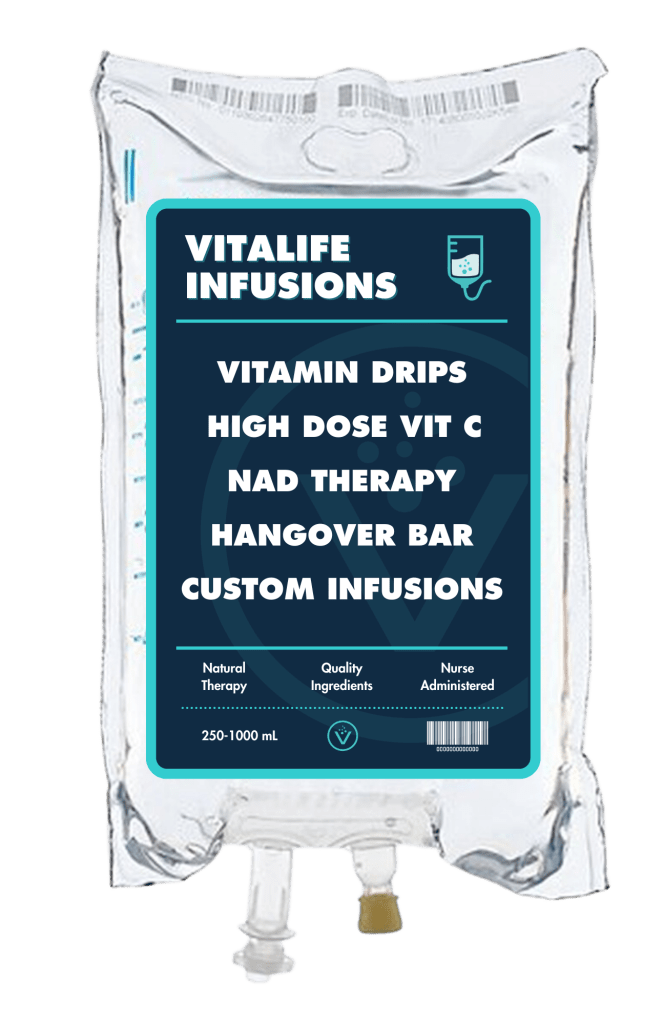 Comprehensive Infusion Menu, including Vitamin Drips, High Dose Vitamin C, NAD Therapy, and Custom Infusions